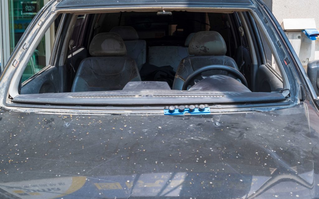 完整卸下玻璃後,去除舊膠,並打上原廠PU膠;使用專業單人安裝工具!!