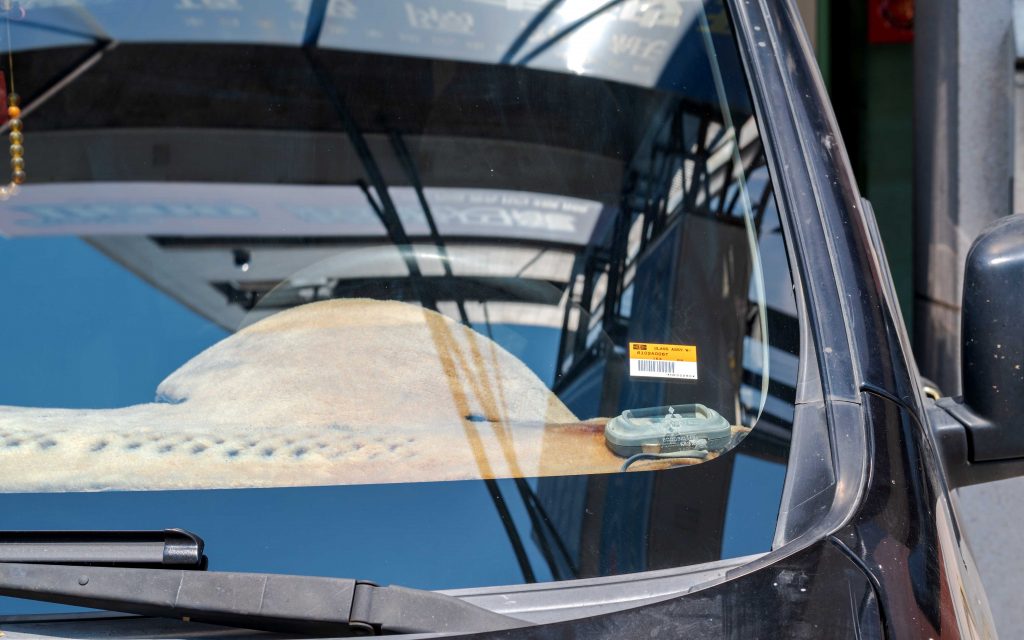 雖然是工作用車,玻璃安裝施工亦是不能馬虎,玻璃黏著膠料陶氏化學的擋風玻璃專用膠.