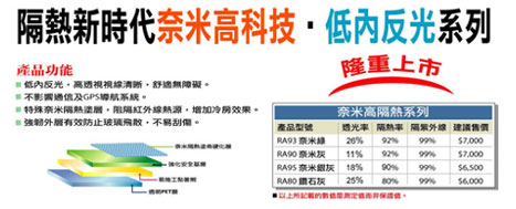 阻隔75%-95%的紅外線的熱輻射。並可降低車輛空調負荷並且改進燃料效率。